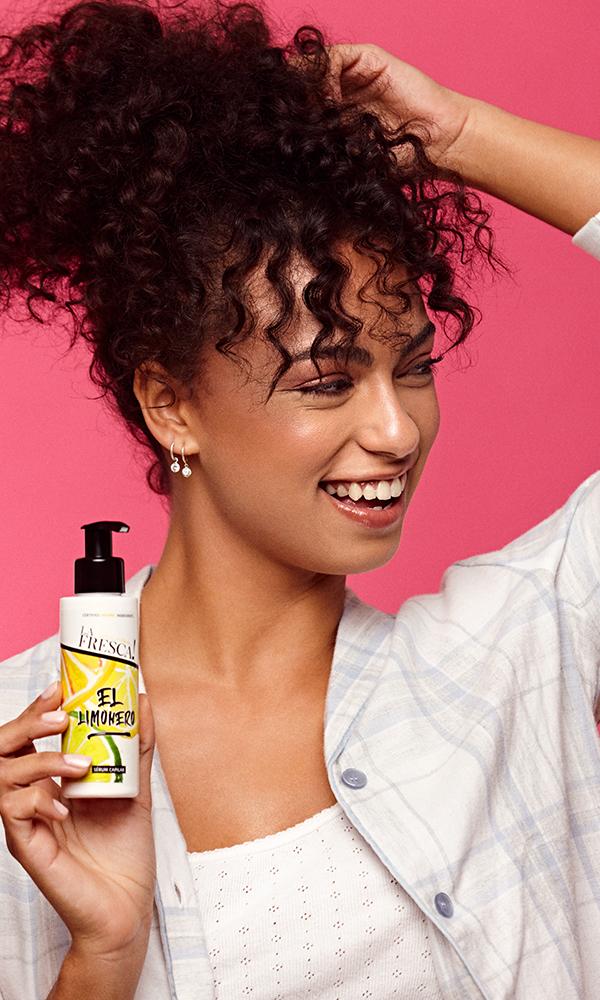 Y, por último, el aceite esencial del limón aumenta la resistencia capilar, lo que disminuye la caída del pelo y el aceite de aguacate repara y protege térmicamente, ya que sus nutrientes actúan contra el encrespamiento para que tu pelo esté sano y bonito.